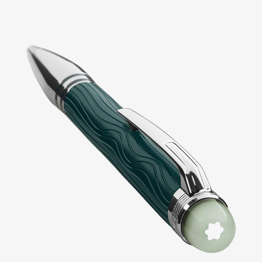 Inspired by the Northern Lights, the StarWalker PolarGreen Ballpoint brings celestial beauty to Earth. A glowing transparent resin dome evokes the aurora’s magical glow, while the wave-patterned dark green barrel with a matte finish reflects its spectral shimmer. Dark green resin rings and platinum-coated fittings add a refined contrast, making this pen a perfect blend of elegance and innovation.