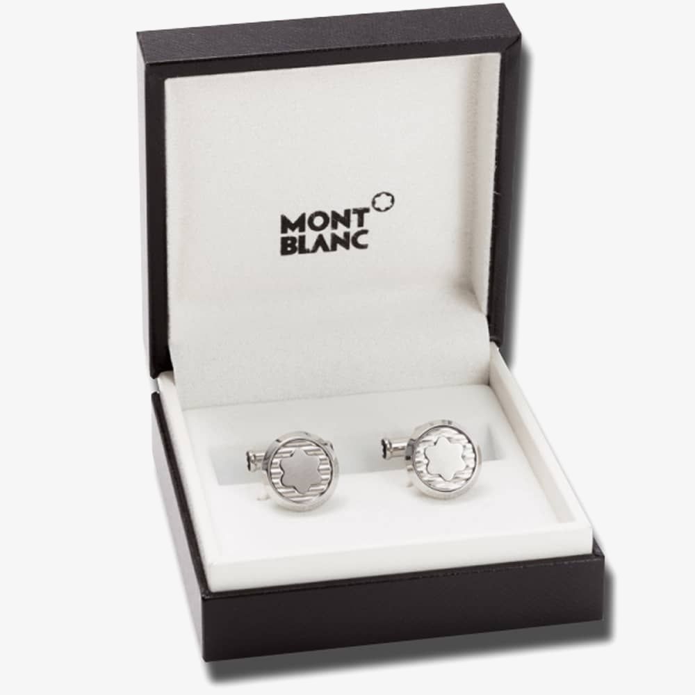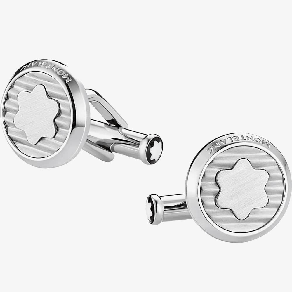 This classic pair of cufflinks has been crafted from stainless steel and features the signature Montblanc star emblem as the centrepiece. The ridged background also contrasts against the brushed finish of the star providing a unique and stylish effect. ‘Montblanc’ embossed detailing is also present around the edge.