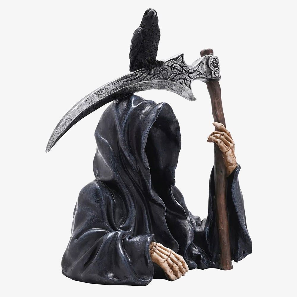 Embrace the dark allure of the Grim Reaper Figurine from the Mystic Legends Collection by Juliana. This striking piece depicts Death’s hooded visage, clutching his signature scythe with a raven perched ominously upon it, making it a hauntingly captivating addition to any space. A memorable gift for fans of the mysterious and macabre, perfect for display on shelves, desks, or sideboards.