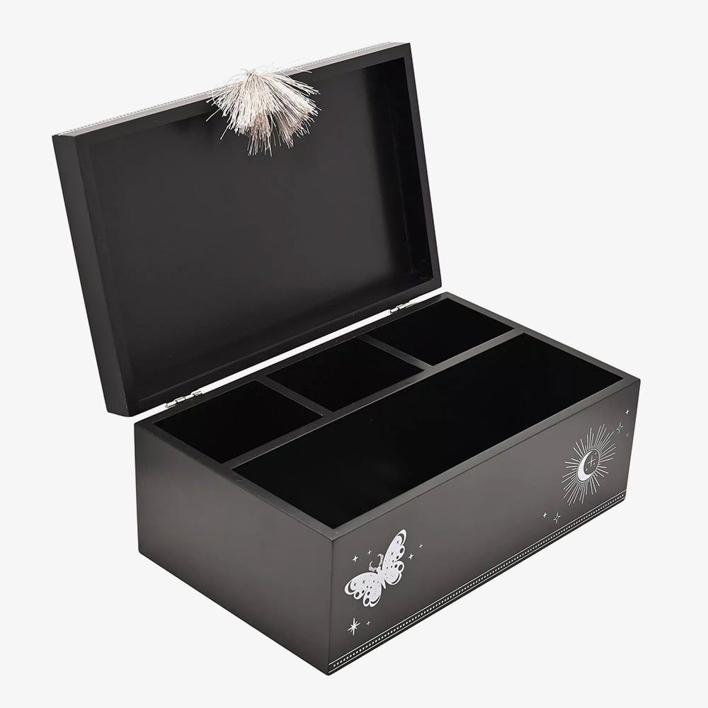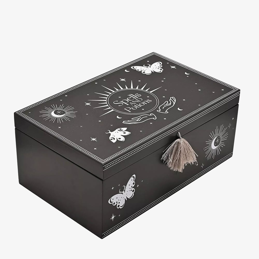 https://www.thbaker.co.uk/mystic-legends-spells-and-potions-box-gift-69669171134Mystic Legends Spells And Potions Box Gift 69669https://www.thbaker.co.uk/media/catalog/product/3/1/31-08-25148609_01.jpg29.9529.95GBPInStock/testing-categories/Test_Andrew/THB-1888-Widdop/Flash Sale/Gifts/Jewellery Boxes/Trinket Boxes/Gifts/Jewellery Boxes/Gifts/Jewellery Boxes/Wooden Jewellery Boxes/Gifts/Gifts For Her/Gifts7983804283253908832936903687126428714936873908Mystic Legends Blk Wooden Spells and Potion Box Uncover a world of enchantment with the Black Wooden Spells & Potions Box from the Mystic Legends Collection by Juliana. Crafted from wood with a rich black finish, this mystical box features an intricate celestial design of moons, stars, and butterflies, finished with a decorative tassel for an extra touch of magic. Perfect for storing trinkets, crystals, or keepsakes, it’s an elegant addition to any mystical or gothic-inspired space.
