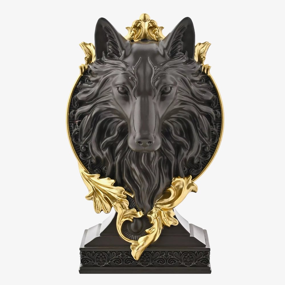 The Werewolf Head from the Mystic Legends Collection by Juliana is a striking addition for fans of the mystical and gothic. Crafted from high-quality resin, it features a brown and gold metallic effect finish that highlights intricate detailing.