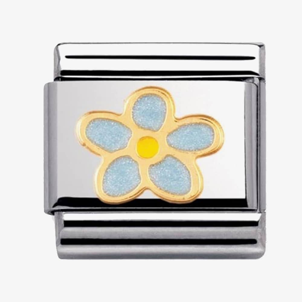 A pretty floral charm from Nomination, inspired by the Forget Me Not this Classic Composable charm makes a great addition to a feminine bracelet. The gorgeous floral is crafted from 18ct gold with glittery blue and vibrant yellow enamel detailing. Pair with other floral charms to create a bold blooming bracelet and a playful feminine theme.
