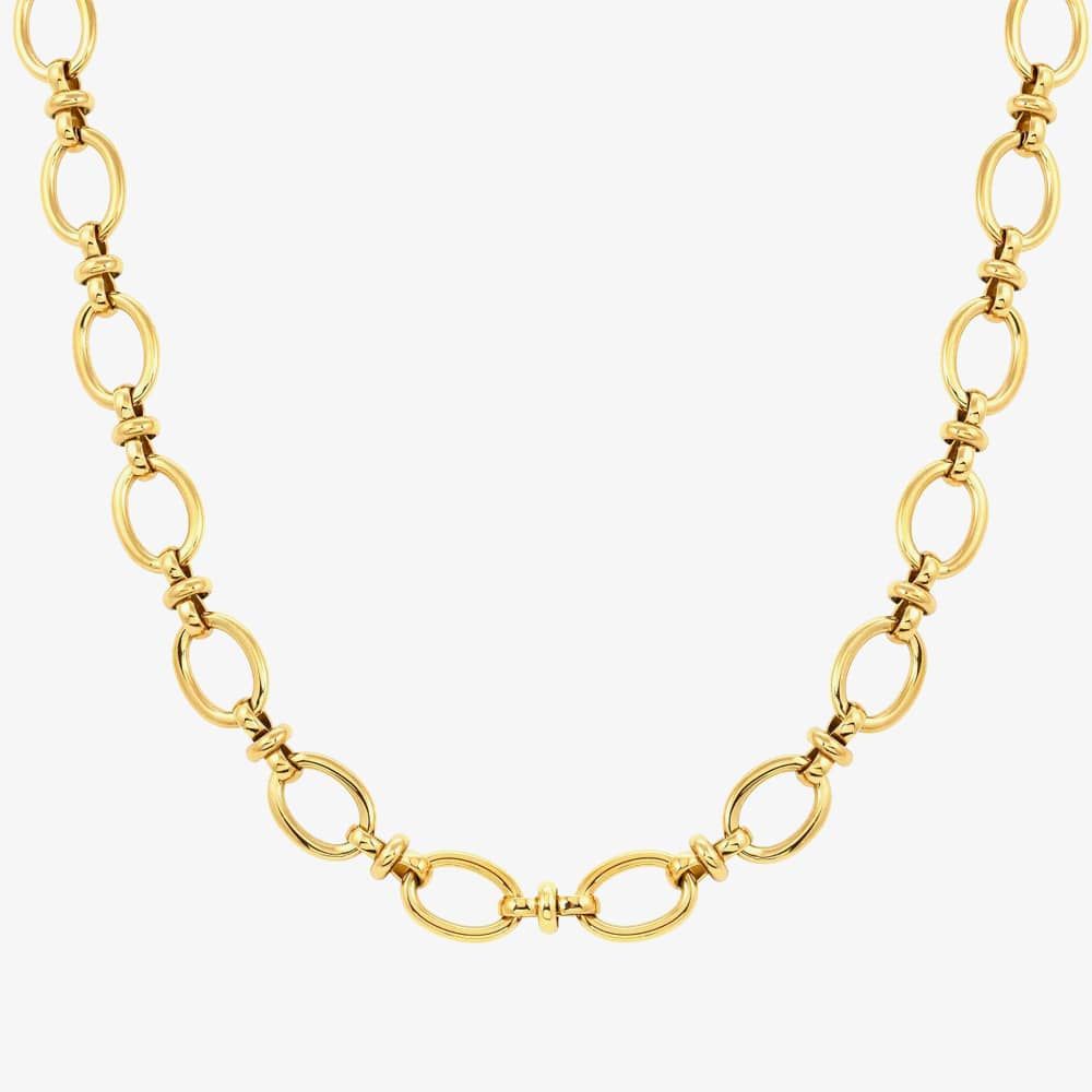 The Nomination Affinity Gold Plated Stainless Steel Oval Link Necklace 028604/012 is delicately crafted from stainless steel with gold plating. This necklace is adjustable in length, featuring large oval hoops linked together to create this minimal yet bold look.
