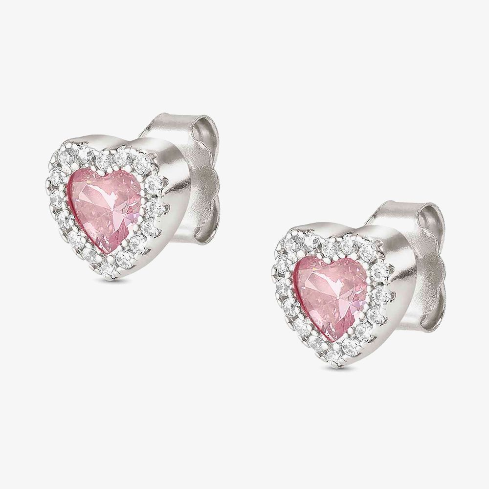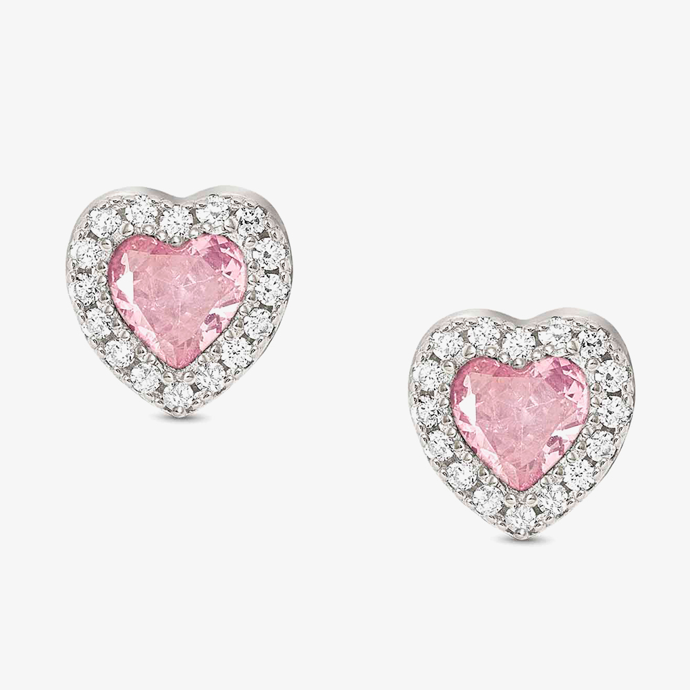 Each pink heart stud is gracefully encircled by a halo of sparkling white cubic zirconia stones, creating a mesmerising and romantic ensemble. This intricately crafted necklace is a symbol of love and sophistication, making it a perfect accessory for special occasions or a thoughtful gift to express heartfelt emotions.