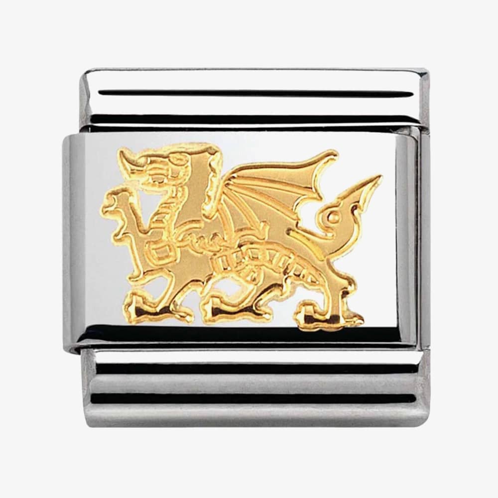 The perfect gift to add to any lover of mythical beasts collection. Elegantly crafted from gold plated material in the form of a roaring fierce dragon. Comes set on a stainless steel link that can be added to your Nomination bracelet.