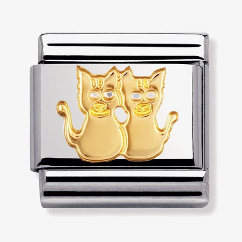 This pretty Cats charm features a cute design made out of gold plated material which rests on a stainless steel link. The perfect charm to add to your ever growing collection.