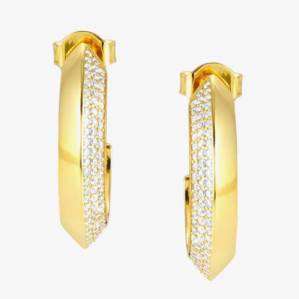 The Nomination Aurea Pave Half Hoop Earrings 145713/010 are delicately crafted from 925 sterling silver with 24ct yellow gold plating. These dazzling half-hoop earrings feature cubic zirconia pave adorned on one half of the hoop, while the other side is left blank, creating this statement look. A butterfly backing is provided for a secure fitting.