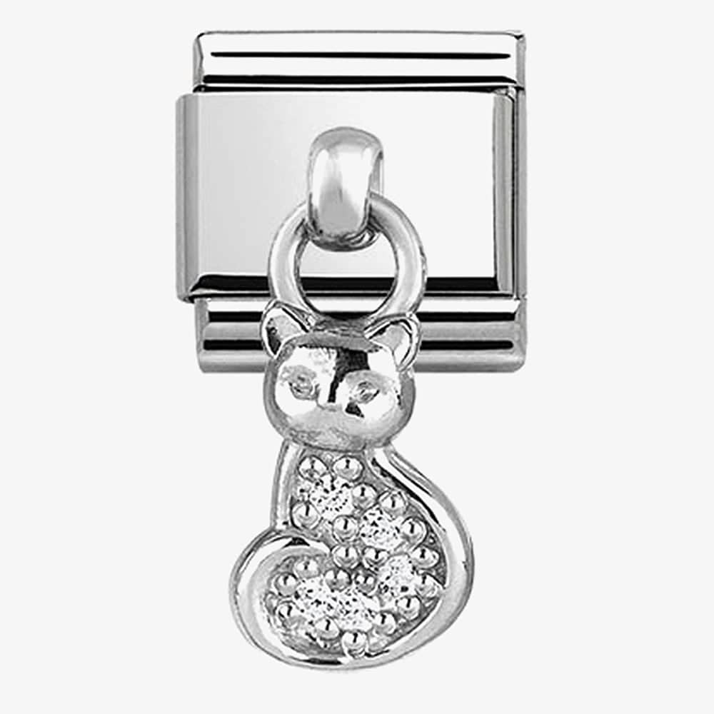 Show your love for cats with this beautiful charm from the diverse and admirable brand, Nomination. Forged from stainless steel and sterling silver, this wonderful combination is complemented by the accompanying stones adorning the centrepiece. The intricate detailing is credit to the flawless craftsman behind the brand, resulting in unique and charming pieces finished to the highest standard of quality.