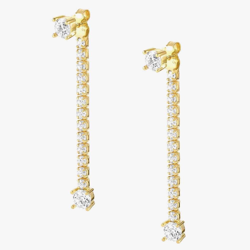 The Chic&Charm Joyful Edition dropper earrings from Nomination have been created in 24k yellow gold-plated sterling silver. These eye-catching earrings feature a four-claw set cubic zirconia stud along with a glistening cubic zirconia drop design which is attached on the butterfly back. The perfect statement earrings to add a touch of sparkle to any outfit.
