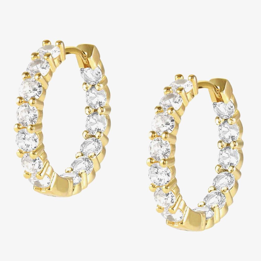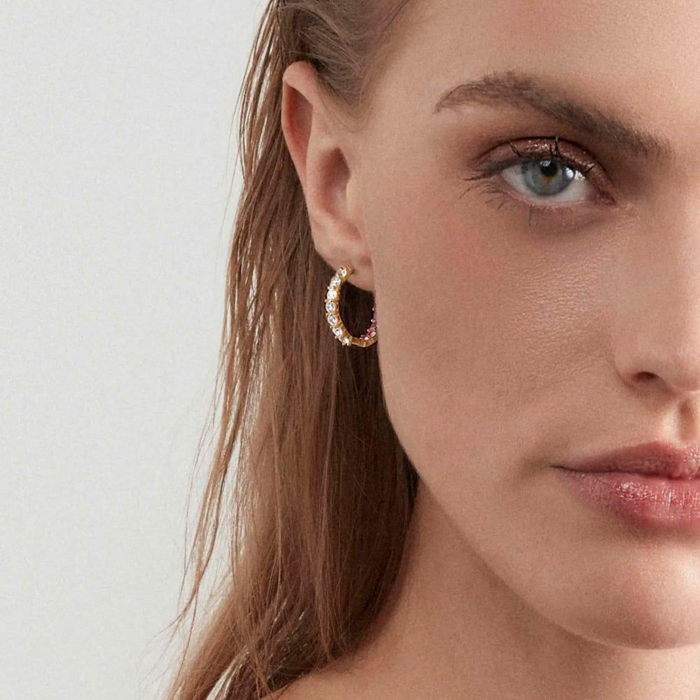 The Chic&Charm Joyful Edition hoop earrings from Nomination have been created in 24k yellow gold- plated sterling silver. These elegant hinged earrings feature claw set cubic zirconia stones which have been crafted on the outside and inside of the hoop so they can glisten and be seen clearly. The perfect way to add a touch of sparkle to any outfit.