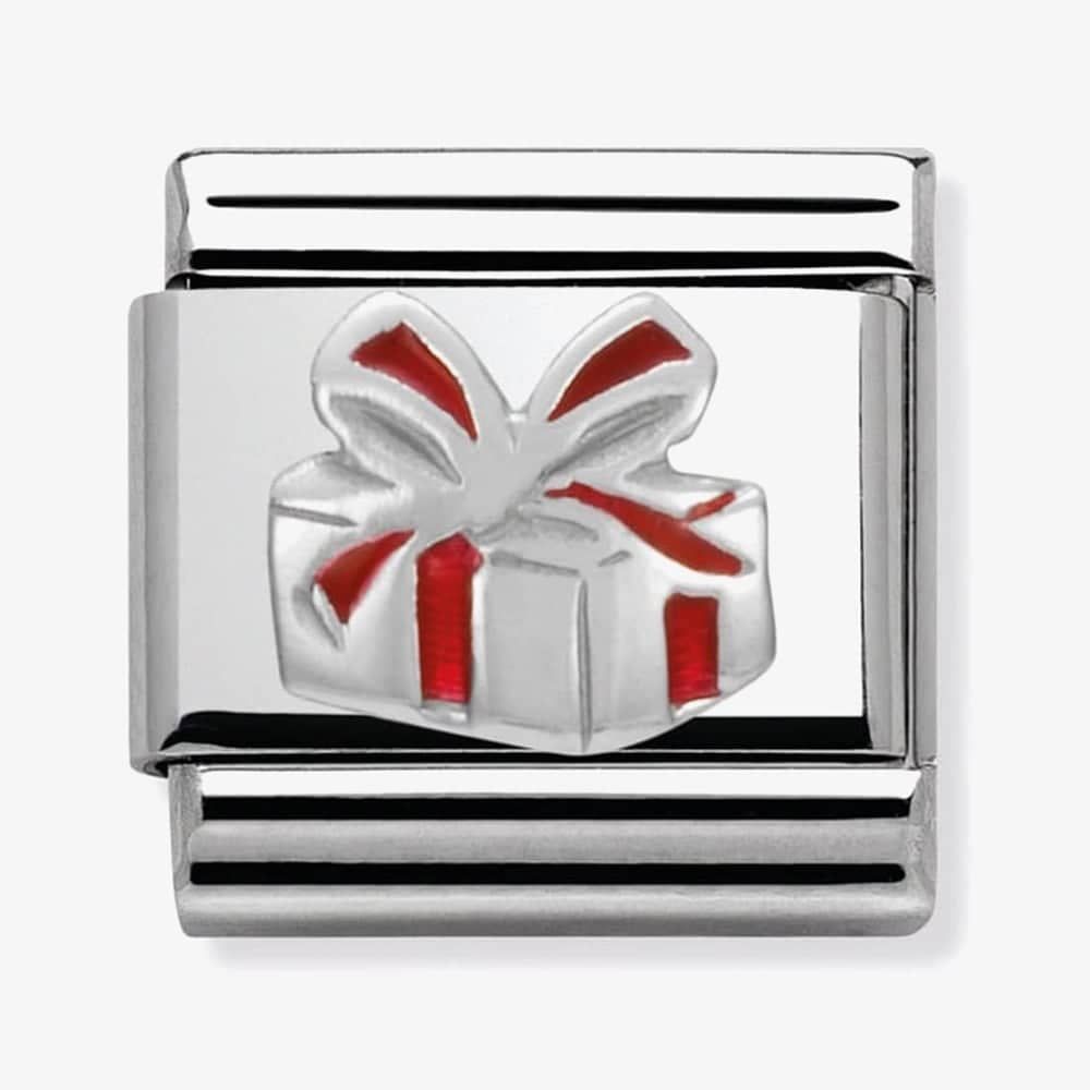 This is a charming festive treat from the Nomination's charm collection. Crafted from stainless steel, this charm features a beautiful present design, adorning a glamorous red enamel bow. This charm is sure to make the perfect gift for someone special.