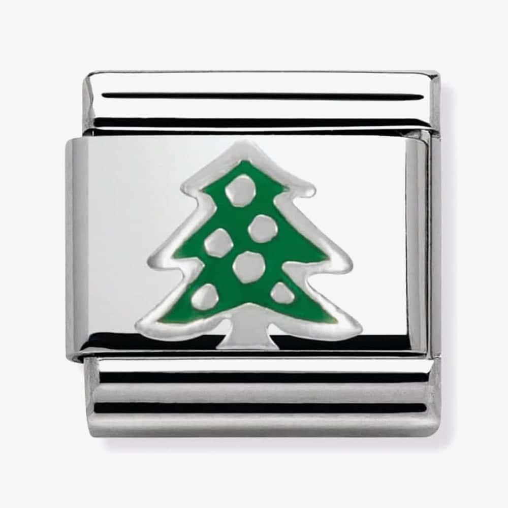 Add a festive feel to your charm bracelet this season with this colourful link from Nomination. The Christmas tree centrepiece is accentuated with vibrant green enamel, contrasting against the silver tone of the stainless steel. Baubles on the tree are represented with sterling silver detailing, creating the perfect piece for the winter period.