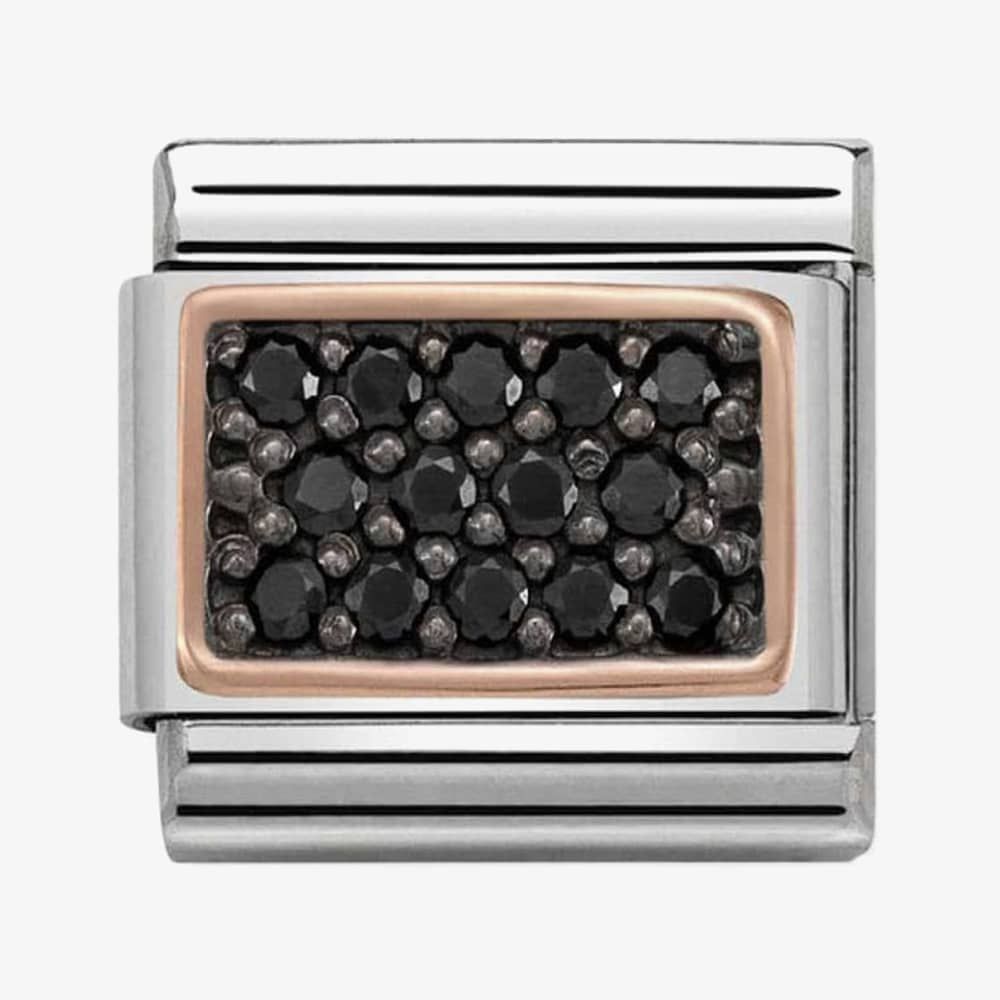 Stylise your outfit with this unique charm from Nomination, suitable for any classic bracelet. The design features an abundance of black cubic zirconia stones which comes with a 9ct Rose Gold outline set on a stainless steel base.