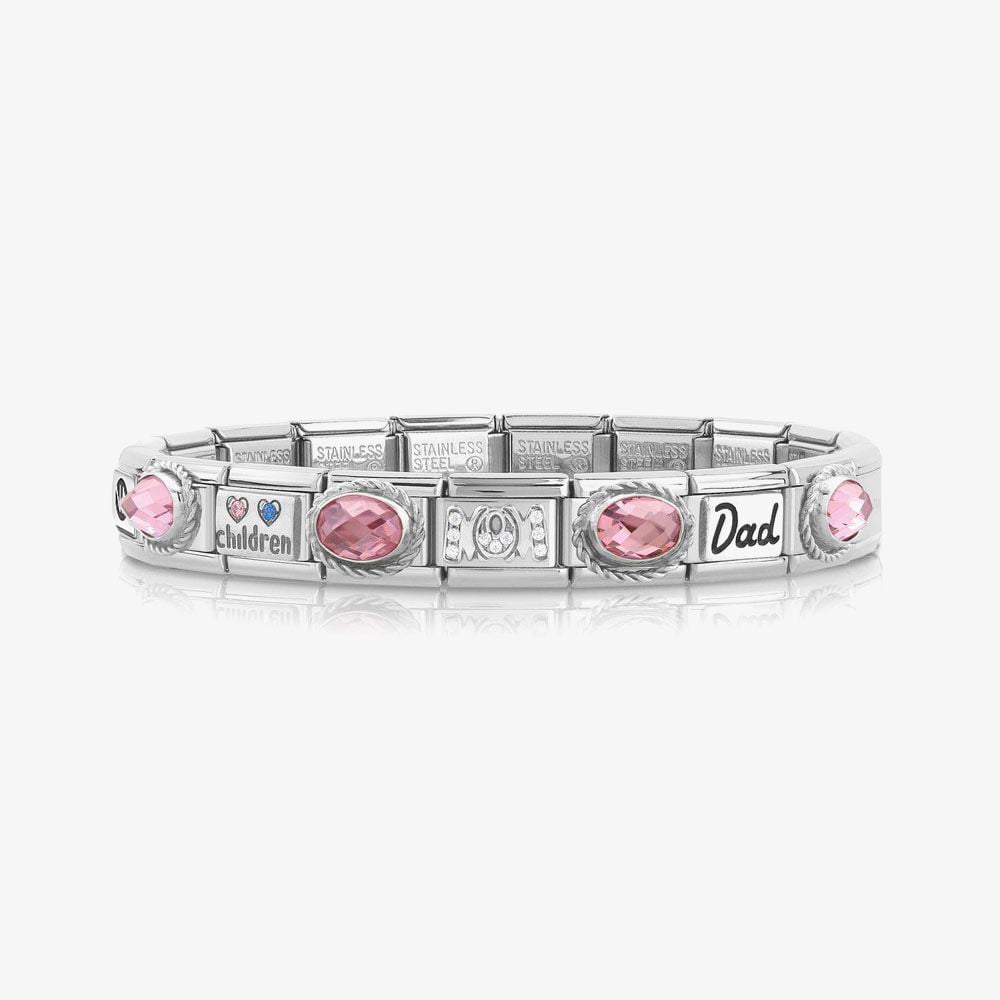 Start your Nomination collection with this original Composable Classic bracelet in stainless steel with cubic zirconia and pink enamel charms.