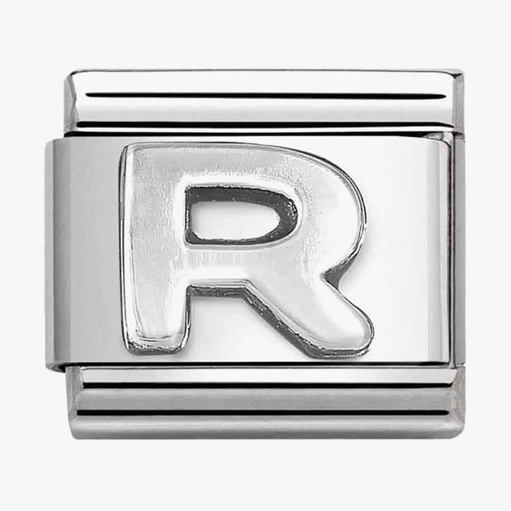The Nomination Composable CLASSIC Letter R Charm 330113/18 features a sterling silver plate with an oxidised letter R design which is set on a stainless-steel base. A perfect addition to add to your COMPOSABLE bracelet.