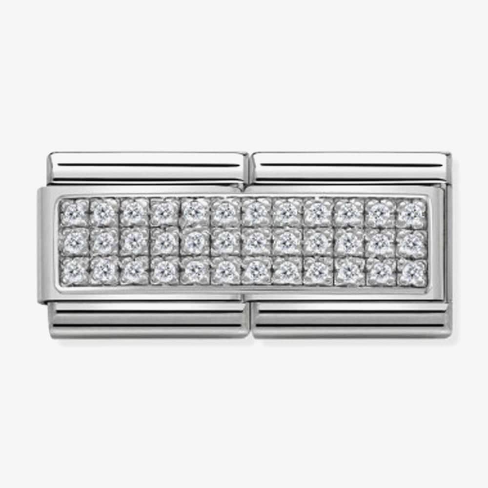 Personalise your precious bracelet with this stunning double link charm from Nomination, perfect for bringing a glamorous sparkle to your collection. Expertly crafted from stainless steel with a silver finish, adorned in a dazzling pavé of clear zirconia.