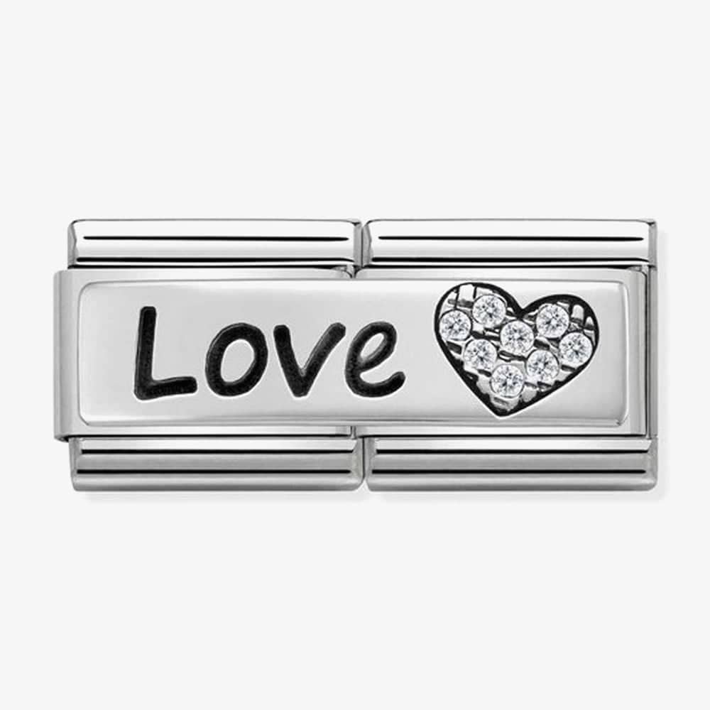 Show someone how much you care with this fabulous double link, the latest innovation from Nomination. Crafted from stainless steel with a shimmery silver finish, featuring the engraved word Love and a dazzling cubic zirconia heart. A wonderful addition to any collection.