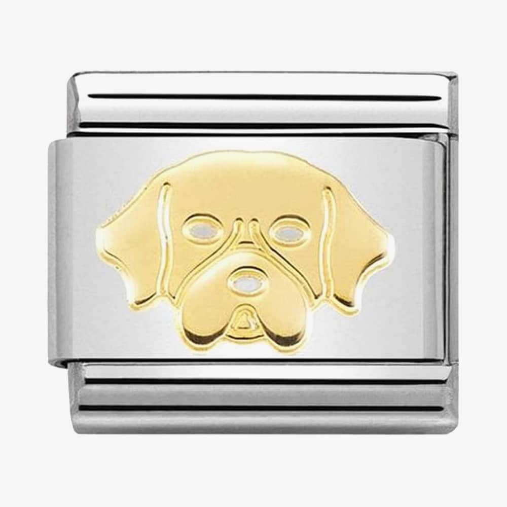 The perfect link for Golden Retriever lovers, this adorable charm is crafted in sterling silver and features a golden retriever symbol in 18ct gold.
