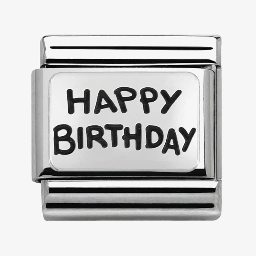 This stylish Nomination charm consists of a stainless steel base, complete with the words HAPPY BIRTHDAY written in bold, capital letters.