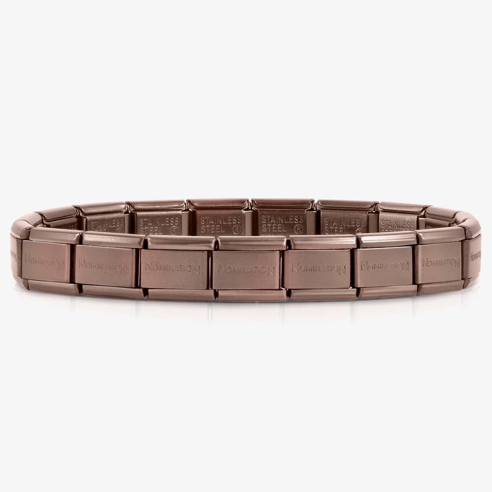 The Nomination CLASSIC Matte Chocolate Brown Base Link 030001/SI/036 is crafted from stainless steel with a matte chocolate brown coating.