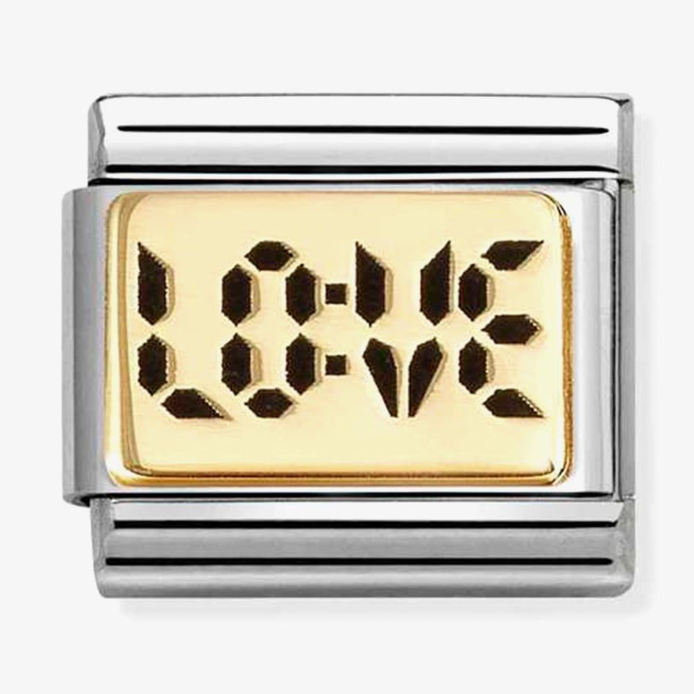 Make a bold statement with the Nomination Classic Charm featuring a yellow gold plate engraved with the word “LOVE” in a digital clock-style font. Crafted to blend modern design with timeless elegance, this charm is a unique and stylish addition to any bracelet, and a perfect Valentine’s gift to show your affection.