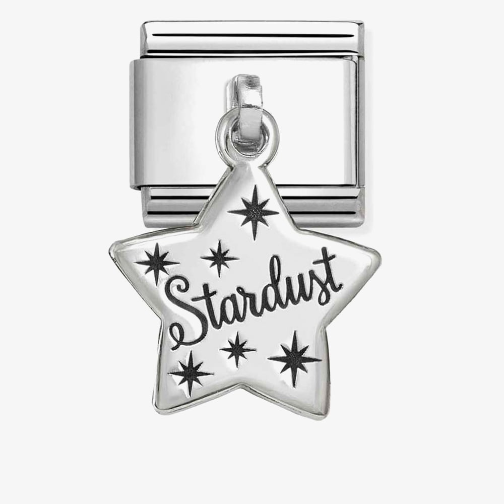 Shine bright with the Nomination Classic Plates Dropper Charm, crafted in a sleek star shape and engraved with the word “Stardust.” Featuring delicate star accents in the background, this stainless steel and sterling silver charm adds a celestial sparkle and modern edge to any bracelet.
