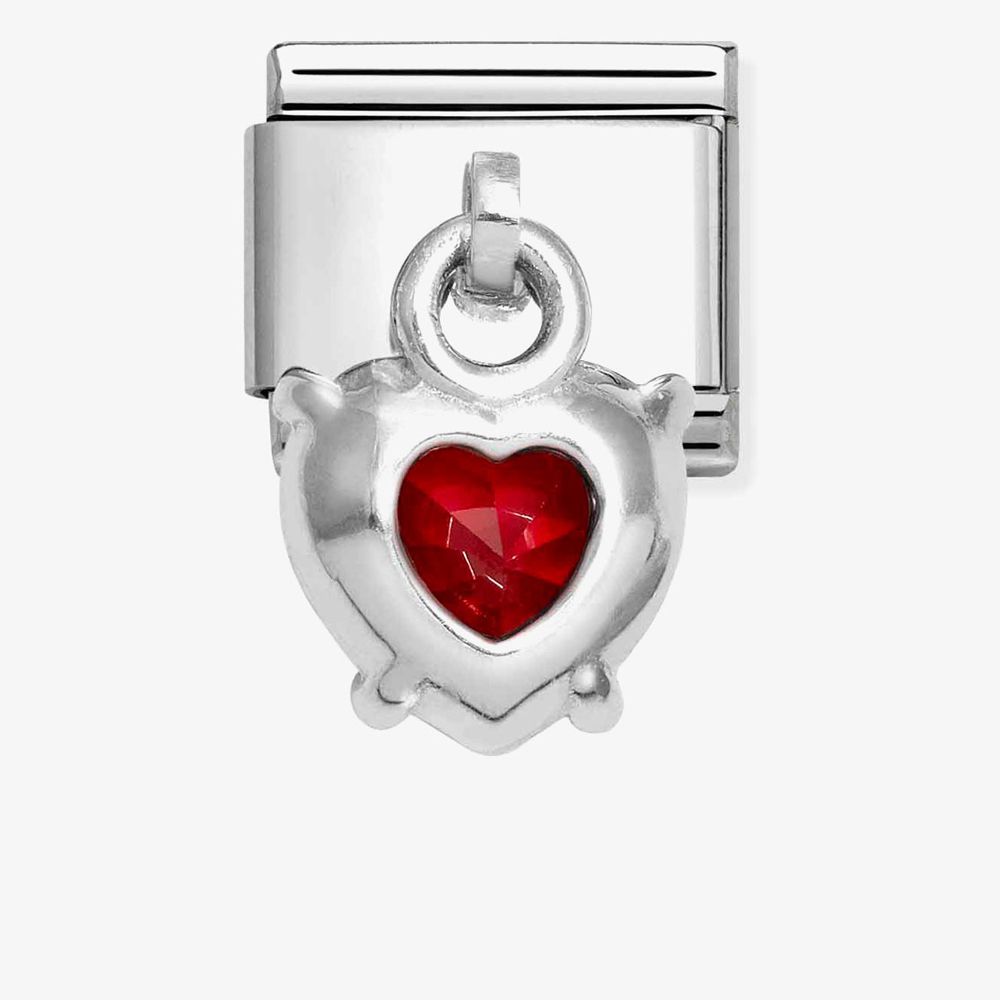 The Nomination CLASSIC is crafted from a stainless-steel base featuring a sterling silver dangle charm set with a red heart cubic zirconia stone. An elegant charm addition to your bracelet.