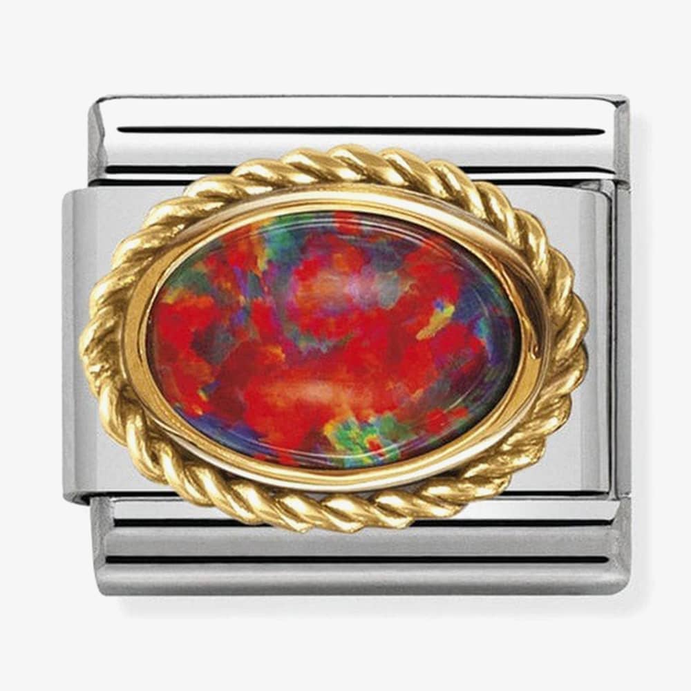 The perfect charm to add some special sparkle and personalise any bracelet, the Nomination CLASSIC Red Opal Charm in stainless steel with twisted rope style 18ct yellow gold features a stunning red opal stone. This classic composable charm would make a lovely gift and can be used in conjunction with other charms to celebrate what is important to you.