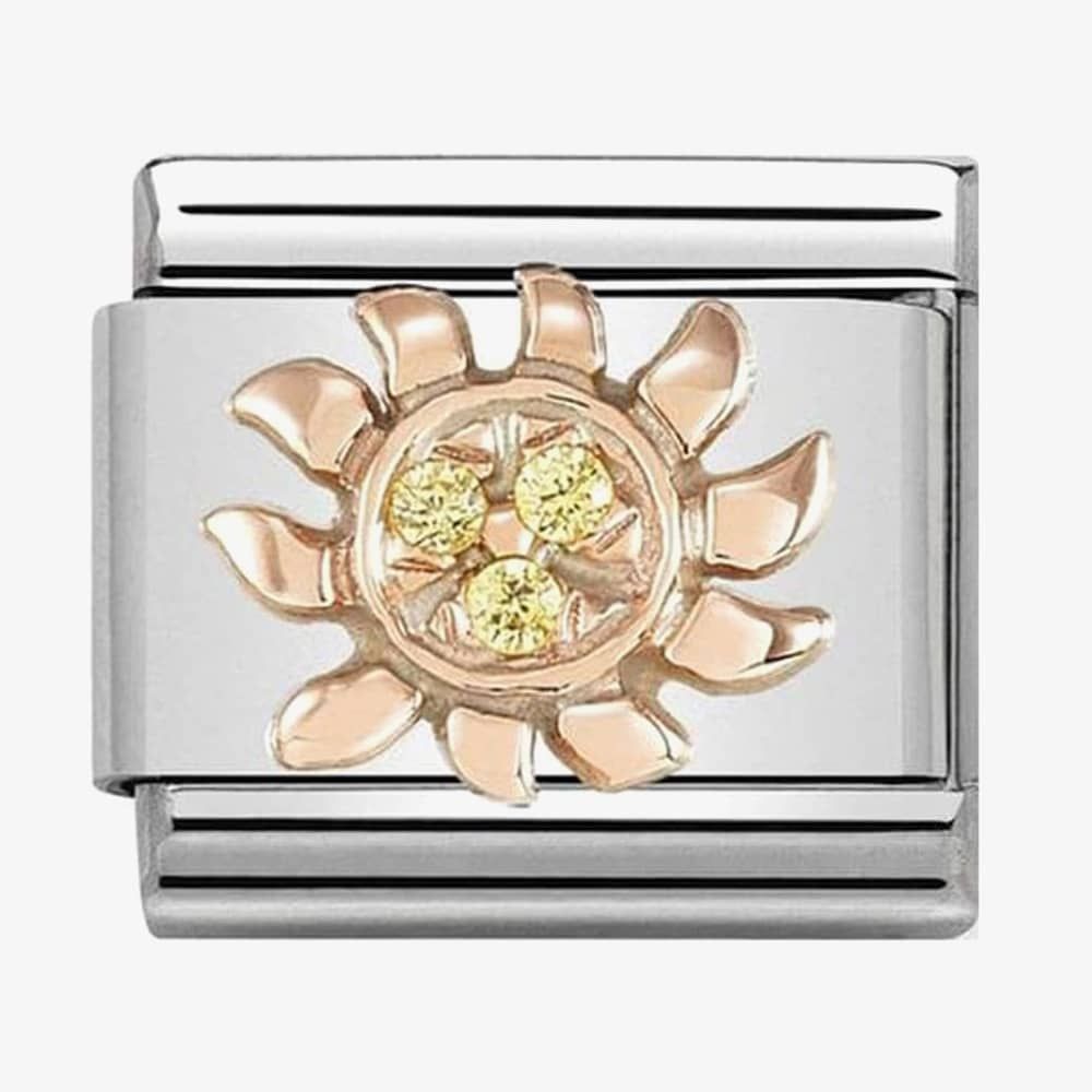 See the sunny side of life with this wonderful link charm. The charm features a 9ct rose gold sun adorned with three yellow cubic zirconia stones for added sparkle.