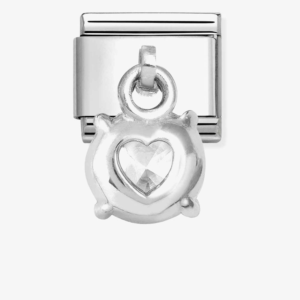The Nomination CLASSIC is crafted from a stainless-steel base featuring a sterling silver dangle charm set with a white round cubic zirconia stone. An elegant charm addition to your bracelet.