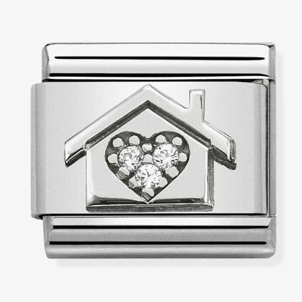 There's no place like home. This adorable link is created in sterling silver and features a house motif with a heart shaped zirconia encrusted centre. The perfect addition to your Composable bracelet.