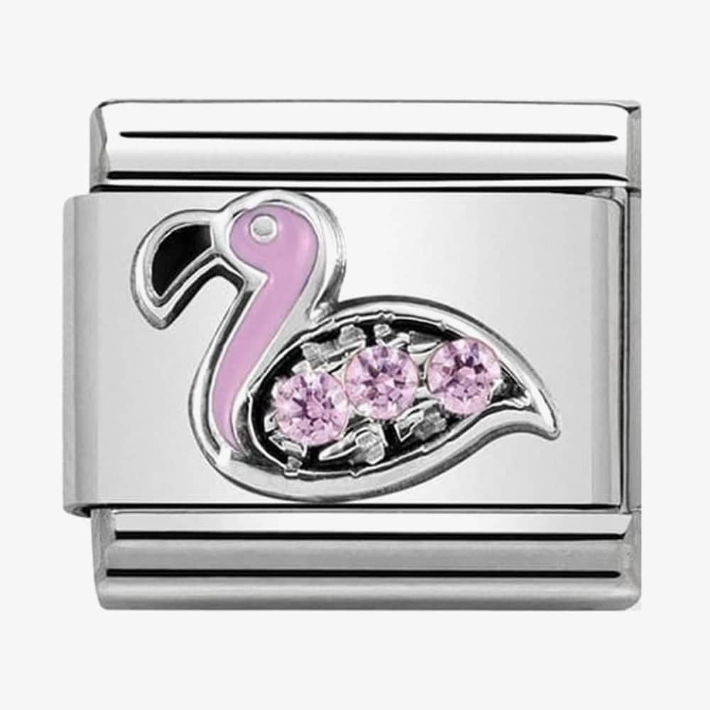 Crafted from a mix of pink enamel and sparkling cubic zirconia this adorable Flamingo charm is sure to look great as part of any Nomination bracelet.