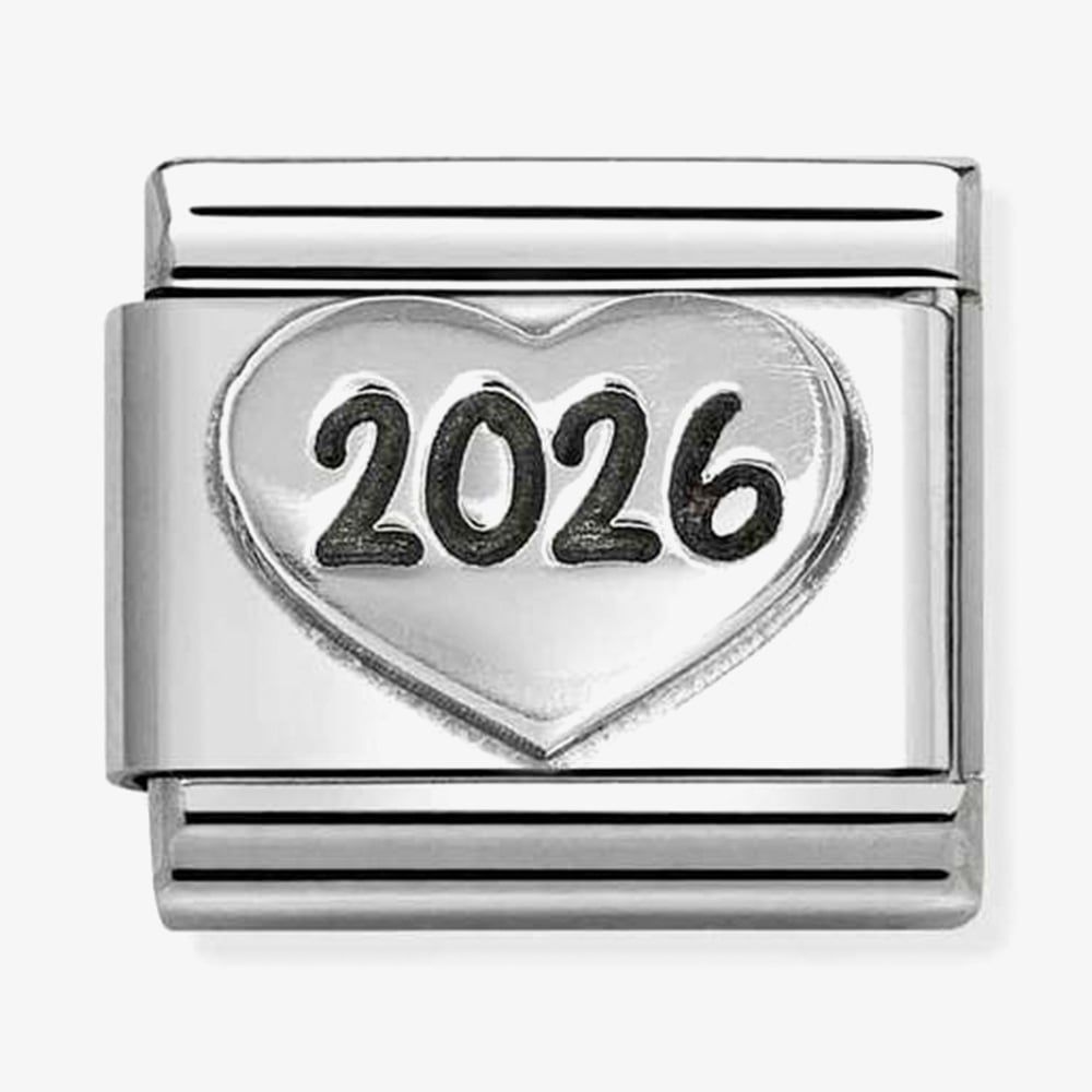 Simple yet significant, this Nomination Classic Charm features a classic heart shape engraved with “2026”. A perfect way to commemorate a special year, this charm adds a personal and timeless touch to any Nomination bracelet.