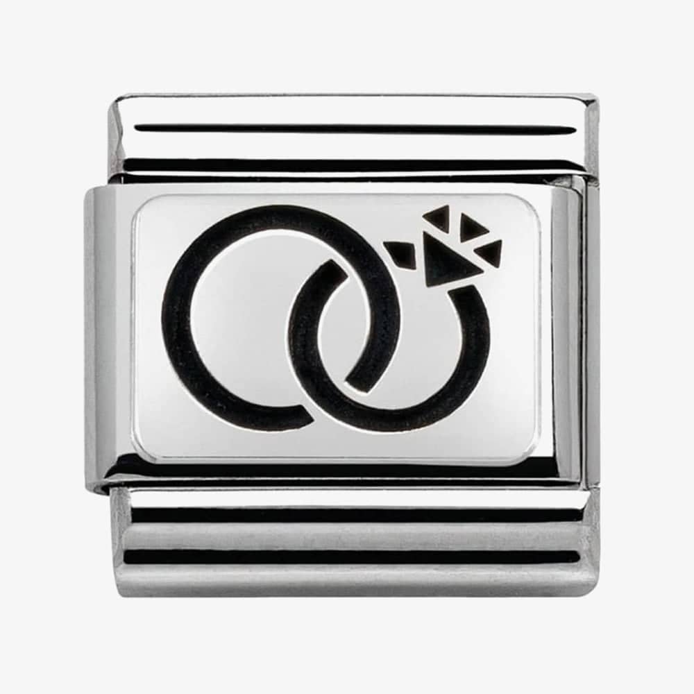 Crafted from stainless steel and smooth black enamel detailing beautiful wedding and engagement rings. What better way to mark this momentous occasion than with this Classic bridal charm. Treat yourself or a loved one today.