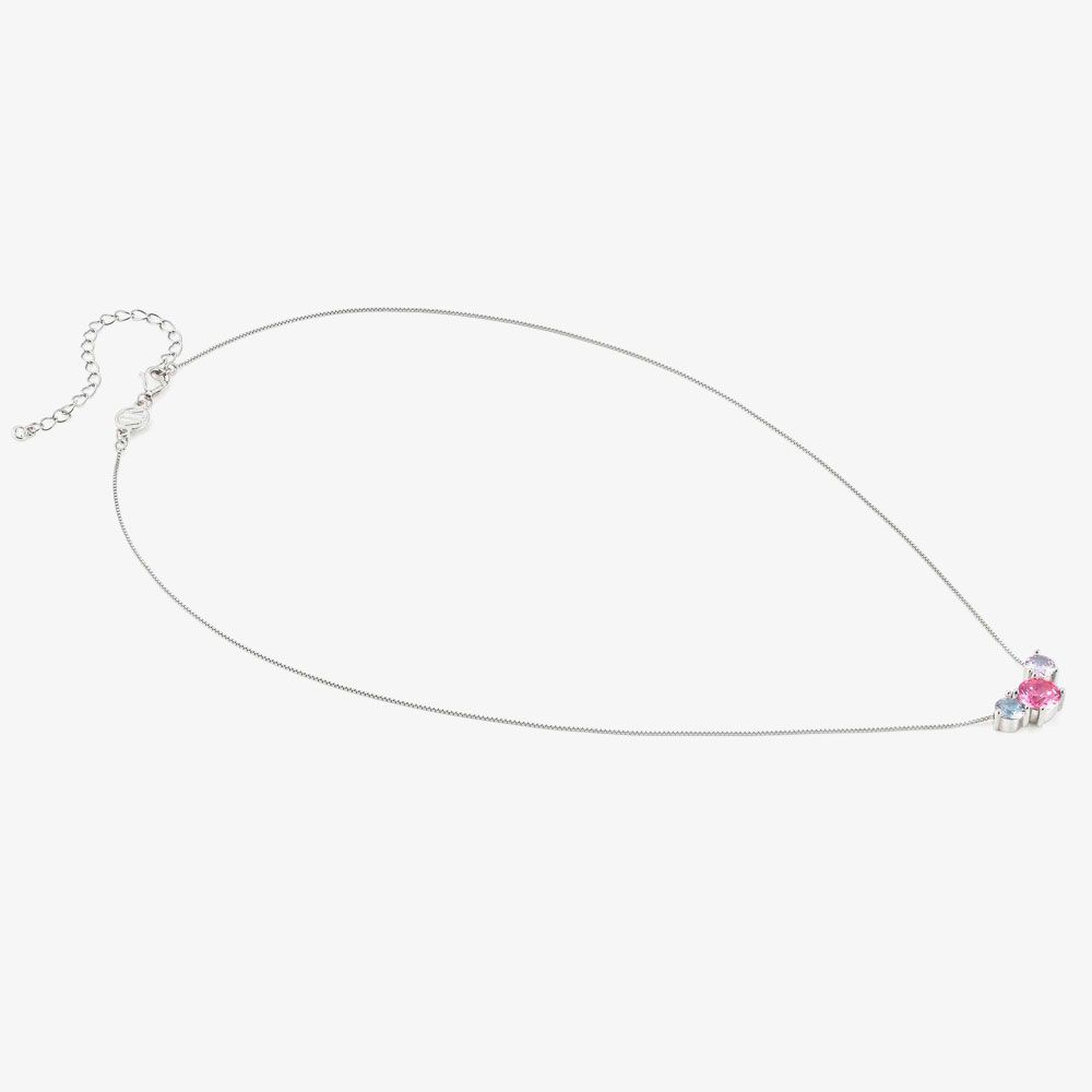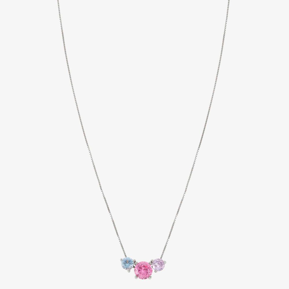 This stunning necklace features a 46cm box chain meticulously crafted from premium sterling silver. Adorned with a captivating array of vibrant cubic zirconia stones in shades of purple, pink, and blue, this necklace adds a touch of elegance and brilliance to any ensemble.