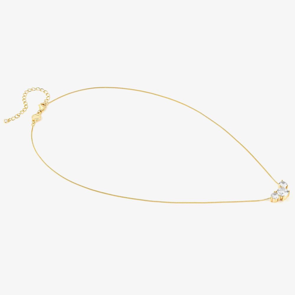 This stunning necklace features a 46cm box chain meticulously crafted from premium sterling silver plated in yellow gold. Adorned with a captivating array of vibrant cubic zirconia stones in white, this necklace adds a touch of elegance and brilliance to any ensemble.