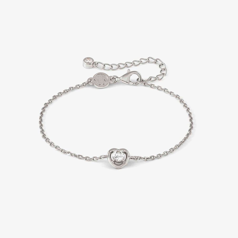 Discover the Nominations Cosmic Love Collection, featuring a sterling silver bracelet with a lustrous white rhodium plating. This elegant piece showcases a delicate heart pendant adorned with sparkling cubic zirconia, adding a touch of romance and brilliance. The adjustable chain, ranging from 15cm to 19cm, ensures a perfect fit, making this bracelet a versatile and timeless addition to any jewellery collection.