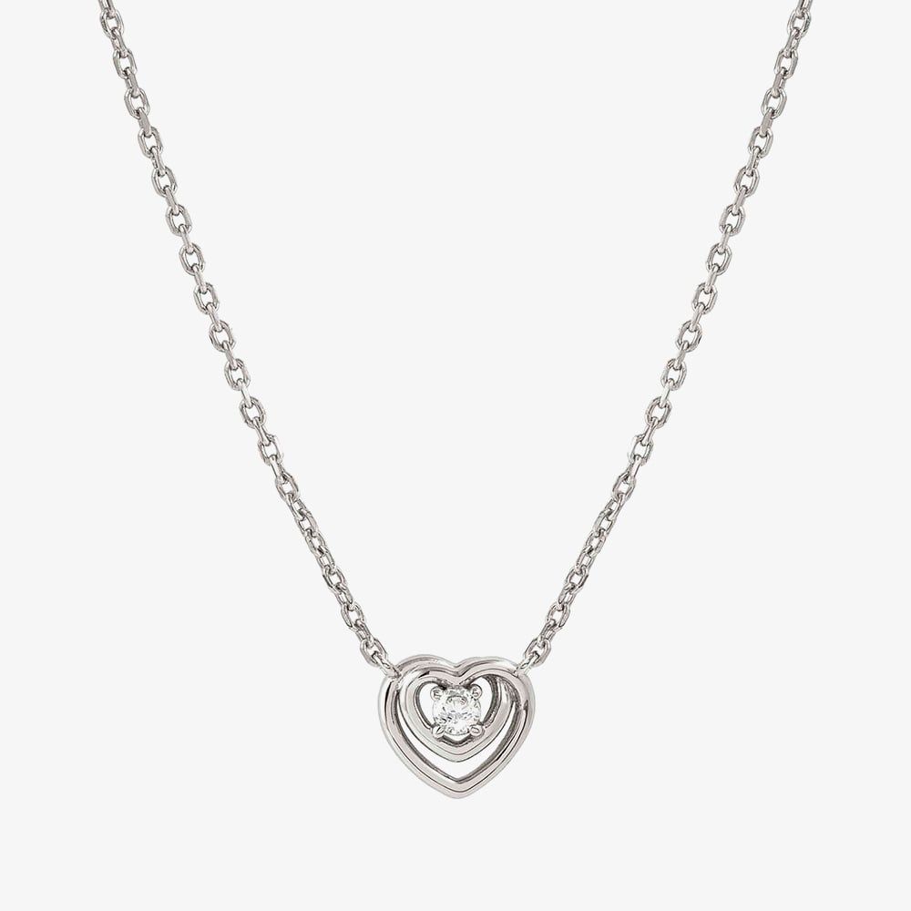 Introducing the Nominations Cosmic Love Collection, featuring a sterling silver necklace with a lustrous white rhodium-treated finish. This elegant piece showcases a heart-shaped pendant, beautifully accented with a sparkling cubic zirconia stone. The adjustable chain, measuring 38cm to 42cm, ensures a perfect fit and is secured with a clasp adorned with a radiant white cubic zirconia. A symbol of love and elegance, perfect for any occasion.