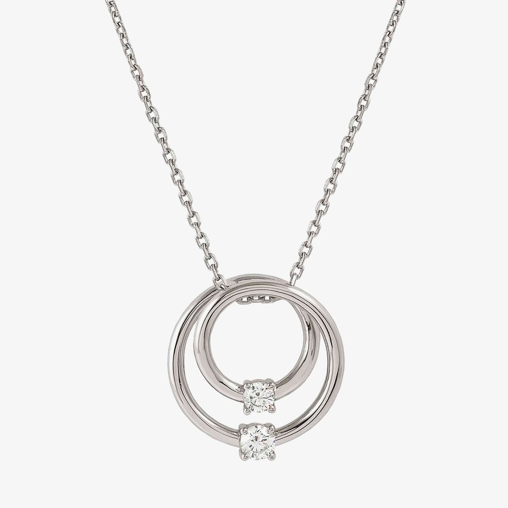 Introducing the Nominations Cosmic Love Collection, featuring a sterling silver necklace with a refined white rhodium-treated finish. This sophisticated piece showcases a large double circle pendant, elegantly set with a sparkling cubic zirconia stone. The necklace is completed with an adjustable chain, ranging from 40cm to 44cm, and is secured with a clasp adorned with a brilliant white cubic zirconia stone. A perfect blend of modern design and timeless elegance.