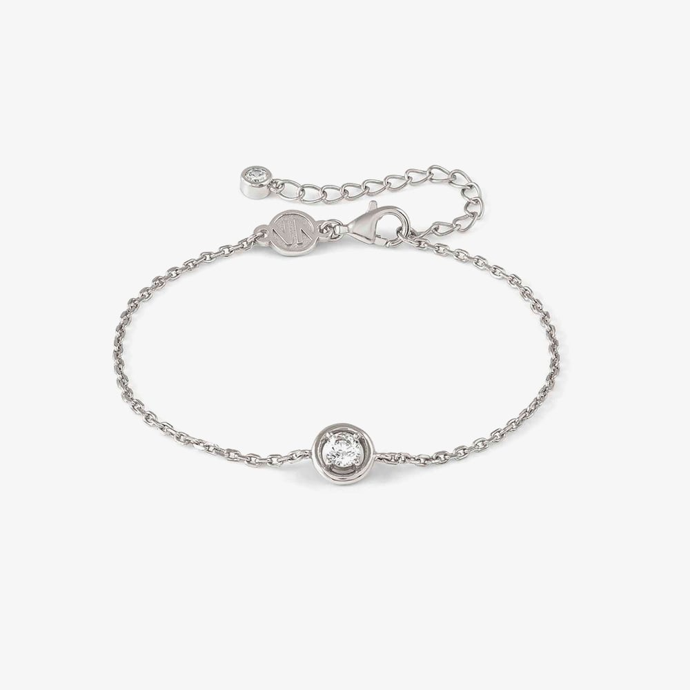 Discover the Nominations Cosmic Love Collection, featuring a sterling silver bracelet with a lustrous white rhodium plating. This elegant piece showcases a delicate round pendant adorned with sparkling cubic zirconia, adding a touch of romance and brilliance. The adjustable chain, ranging from 15cm to 19cm, ensures a perfect fit, making this bracelet a versatile and timeless addition to any jewellery collection.