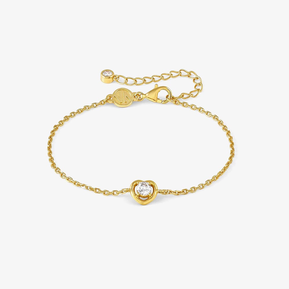 Embrace elegance with the CosmicLove Gold Tone Sterling Silver Bracelet, featuring a charming central heart adorned with white cubic zirconia stone. The gold tone finish ensures lasting shine, making it the perfect accessory for any outfit and occasion—especially Valentine’s Day. A refined symbol of style and love!