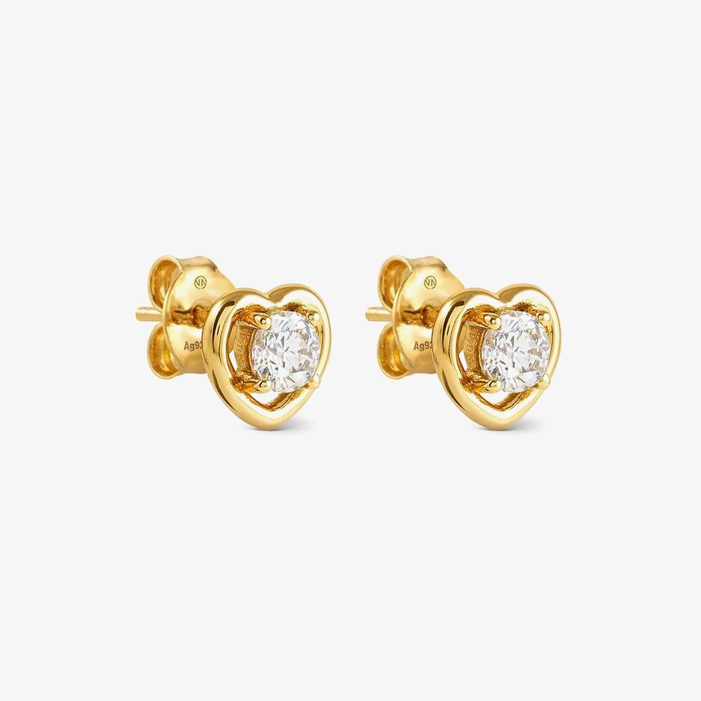 Shine with the CosmicLove Sterling Silver Earrings, a radiant celebration of love. Featuring heart-shaped designs with a yellow gold-plated finish and sparkling white cubic zirconia stone, these earrings add elegance and romance to any look. Perfect for every occasion, especially Valentine’s Day. Embrace the magic of the CosmicLove Collection!