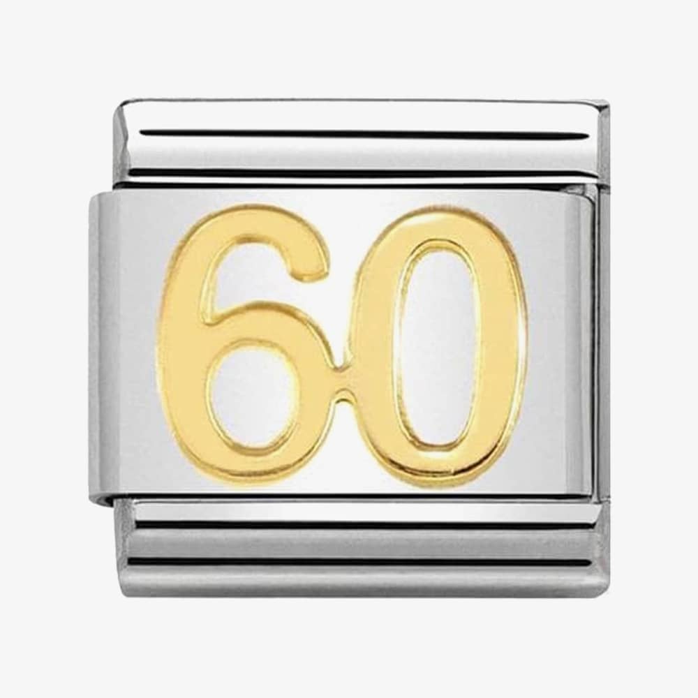 The perfect Nomination charm for that special anniversary, whether it is for someone's 60th birthday or a wedding anniversary. Consisting of a stainless steel link complete with a large gold tone number 60 in the centre.