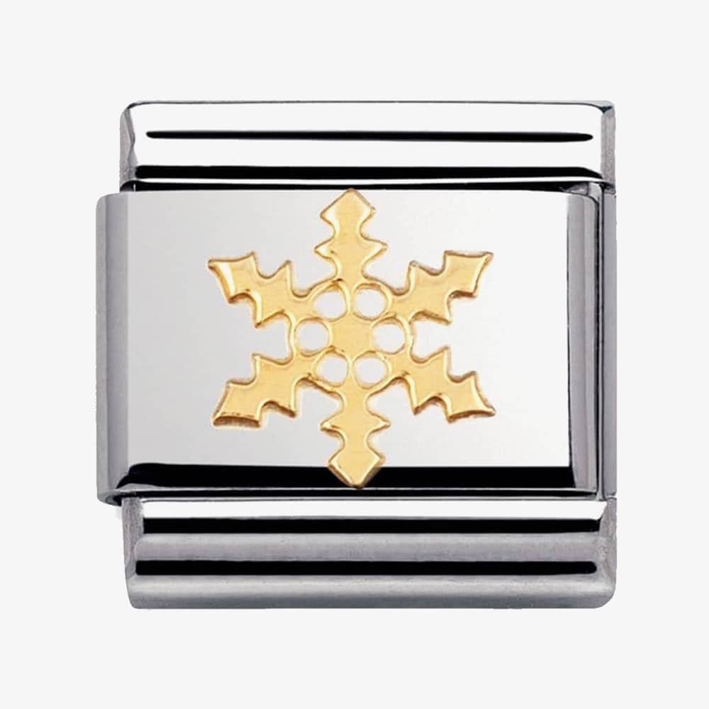 This little snowflake charm offers a homely, christmassy feel to it with its gold tone design set on a stainless steel link base.