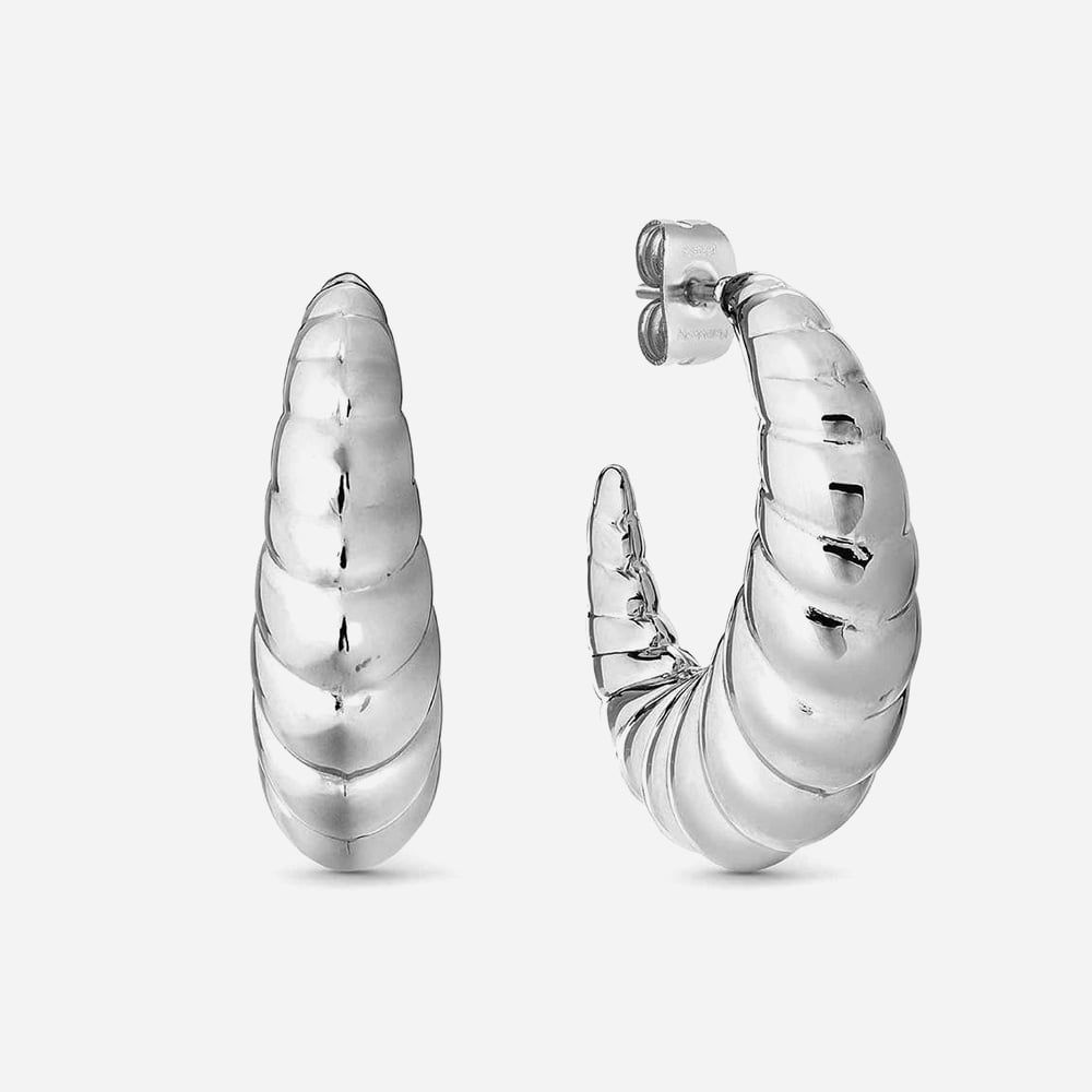 These Nomination Ecclettica earrings feature a chic croissant-shaped twisted hoop design crafted from polished stainless steel. Combining a modern twist with a unique crescent form, they add subtle texture and elegance to any look.