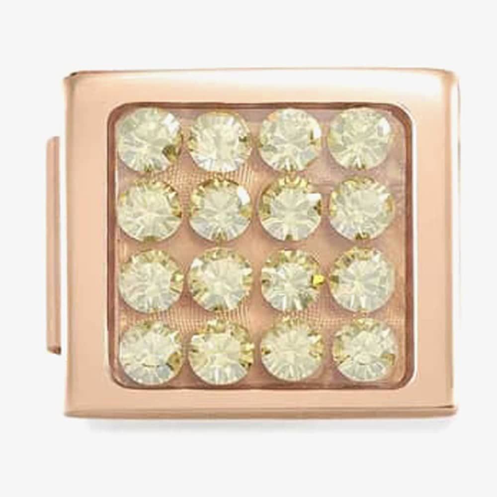 Part of the Nomination Glam Collection, this stunning stainless steel charm features a rose gold tone plating and is encrusted with champagne coloured cubic zirconia pave. Pick your bracelet and decorate with your favourite charms from the collection for a personal style.