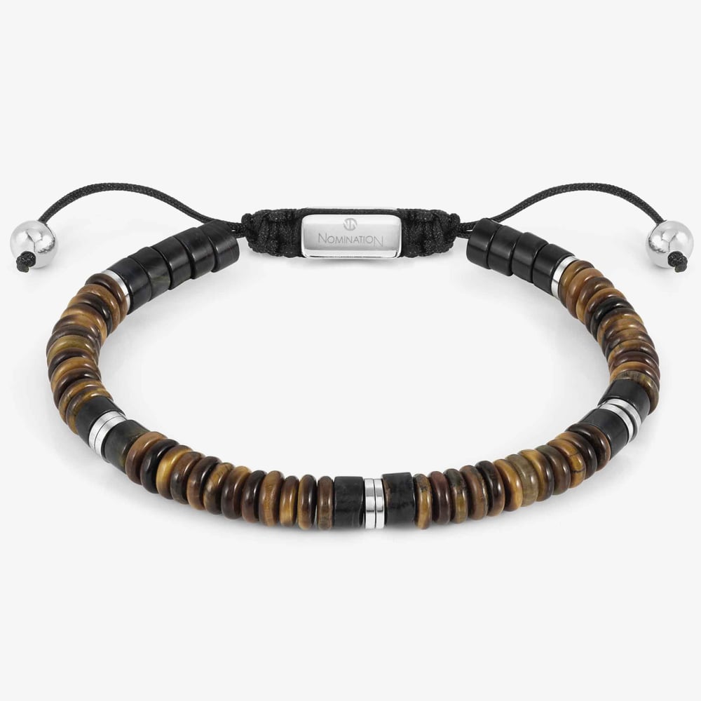 The Nomination InstinctStyle Tigers Eye and Jasper Bracelet 027924/080 features a stainless-steel, tigers eye and jasper stone design which is threaded on a black drawstring cord. This bracelet is adjustable 15-21 cm and is ideal for layering and stacking with other Nomination bracelets to create your own unique look.