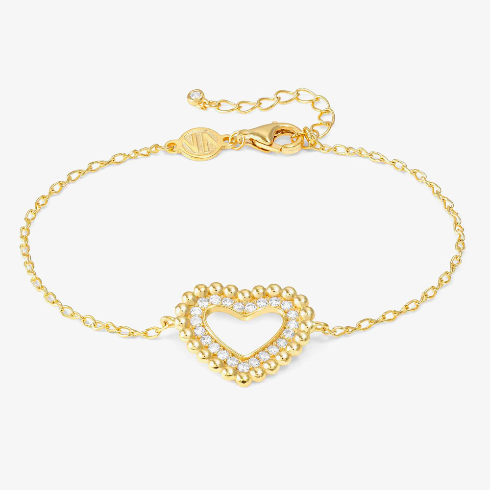 Discover the Nomination Lovecloud Gold Bracelet made of sterling silver with a heart set with white cubic zirconia stones. Elevate your elegance effortlessly.
