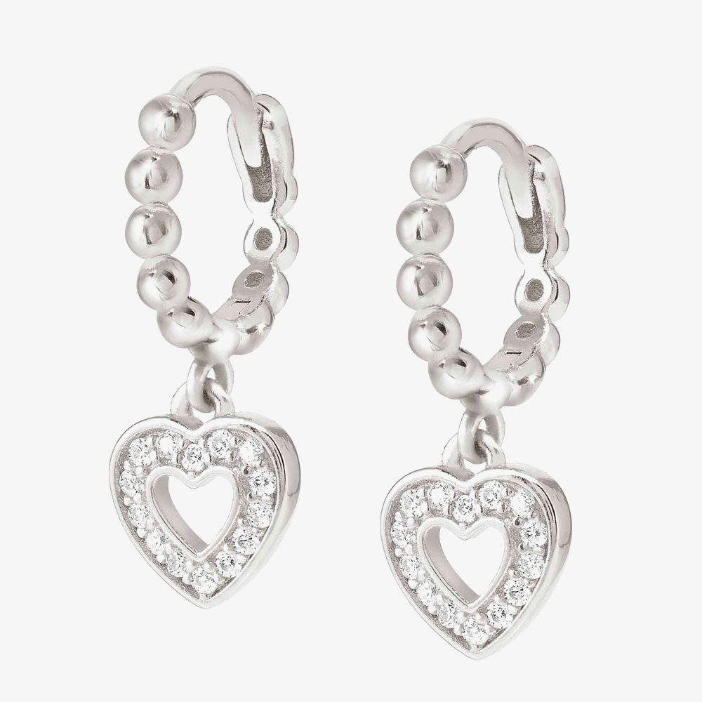 Discover elegance with a pair of Nomination's Lovecloud Heart Dropper Earrings made of sterling silver and set with white cubic zirconia stones.