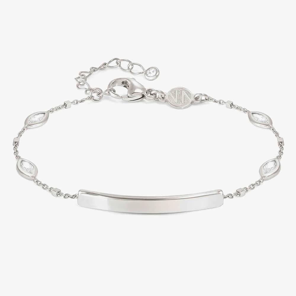 This sterling silver bracelet features a rectangular plate with oval cubic zirconia across the chain. Crafted for durability and elegance, it's a versatile accessory perfect for any occasion. Add a personal touch with engraving, making it a cherished keepsake or a heartfelt gift.